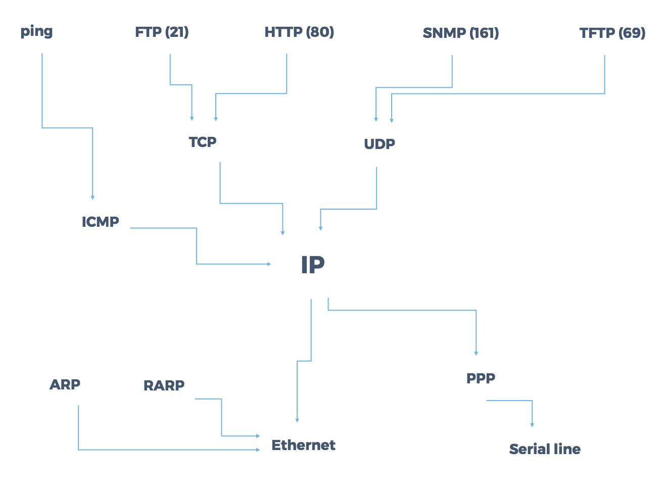 TCP/IP 协议栈图示 2018-04-17 计算机原理 Contents 协议栈工作流 报文层层封装 协议依赖关系图 UDP 报文格式 TCP 报文格式 ICMP 报文格式 Author hopehook LastMod 2018-04-17
